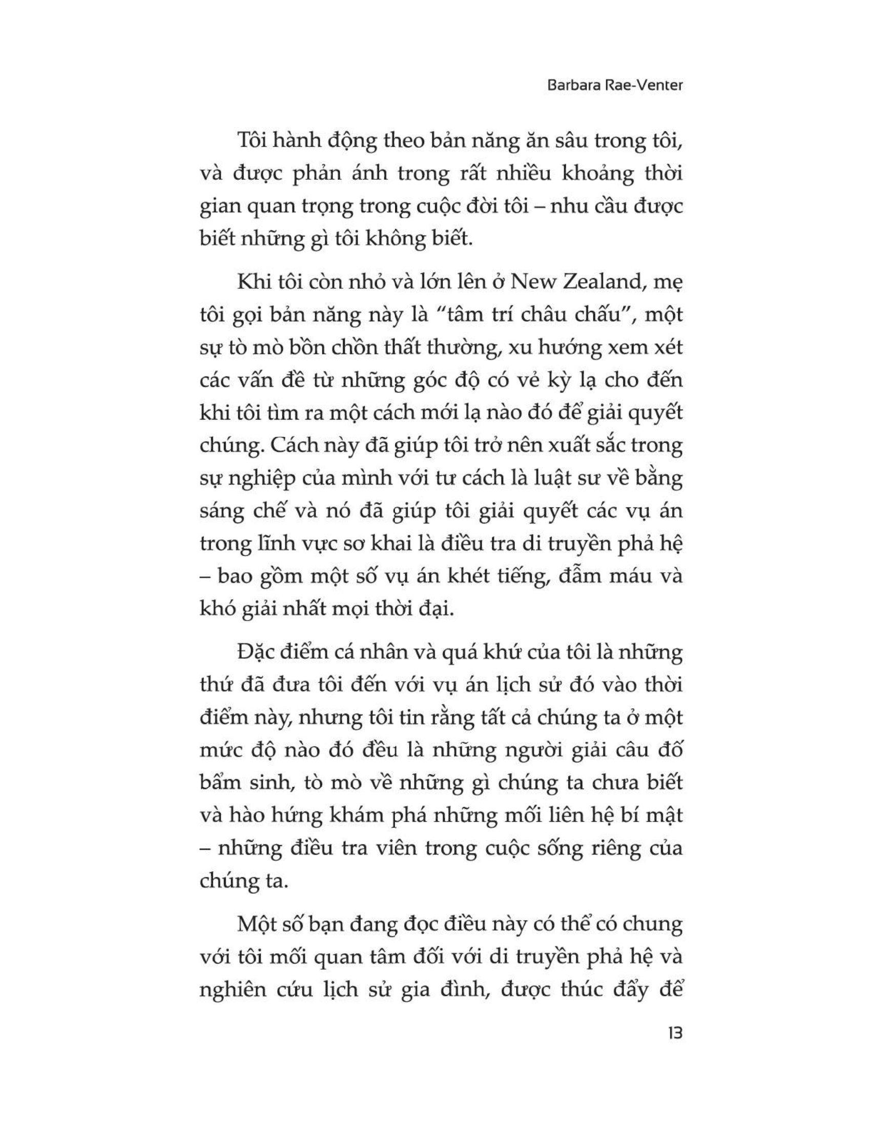 “Một kiệt tác tội phạm CÓ THẬT được viết bởi một bậc thầy phá án lạnh lùng. Công việc điều tra DNA của Barbara Rae-Venter đã cách mạng hóa cách thức cơ quan thực thi