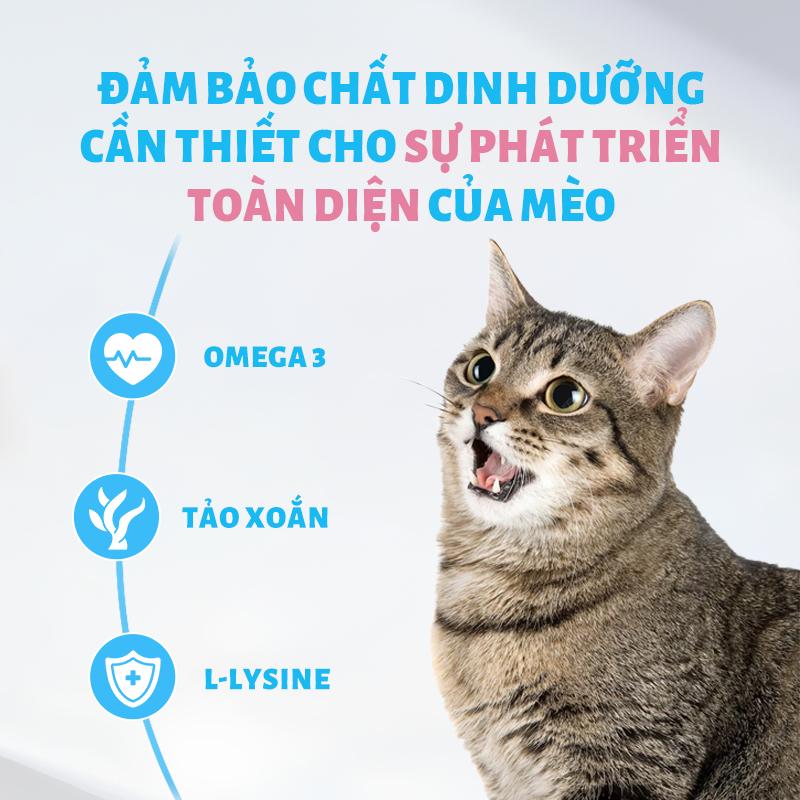 - Có hoạt chất Taurine hỗ trợ phát triển tim, mắt và răng của mèo, giảm nguy cơ mắc bệnh và nhiều loại vitamin khác