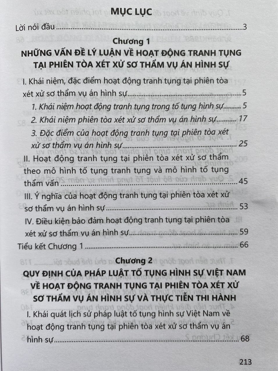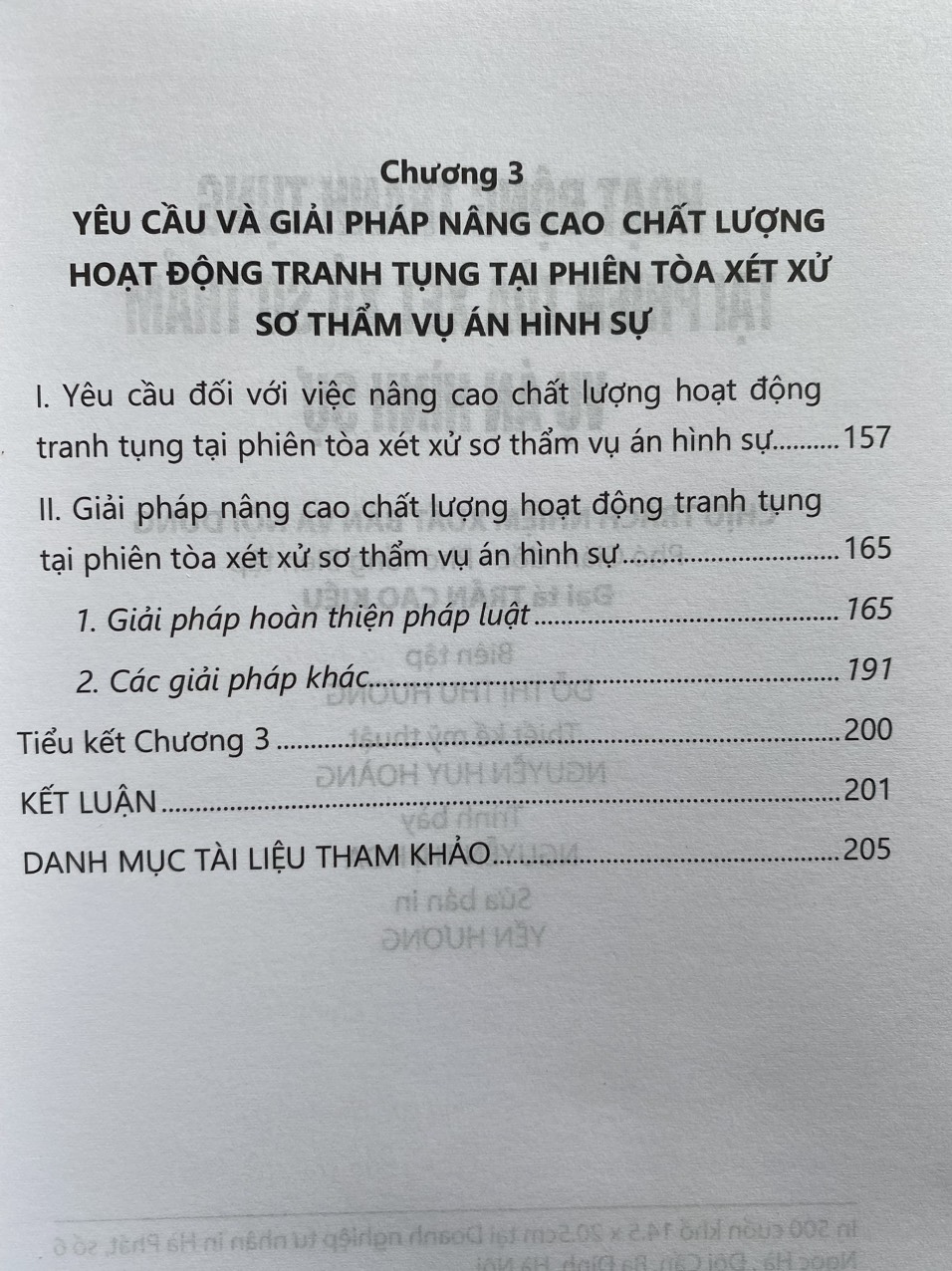Với mong muốn cung cấp thêm cho bạn đọc tài liệu tham khảo về hoạt động tranh tụng tại phiên tòa hình sự sơ thẩm như một số vấn đề lý luận, thực trạng quy định của pháp luật, thực tiễn tranh tụng cũng như đề xuất các giải pháp nâng cao chất lượng hoạt động tranh tụng tại phiên tòa.