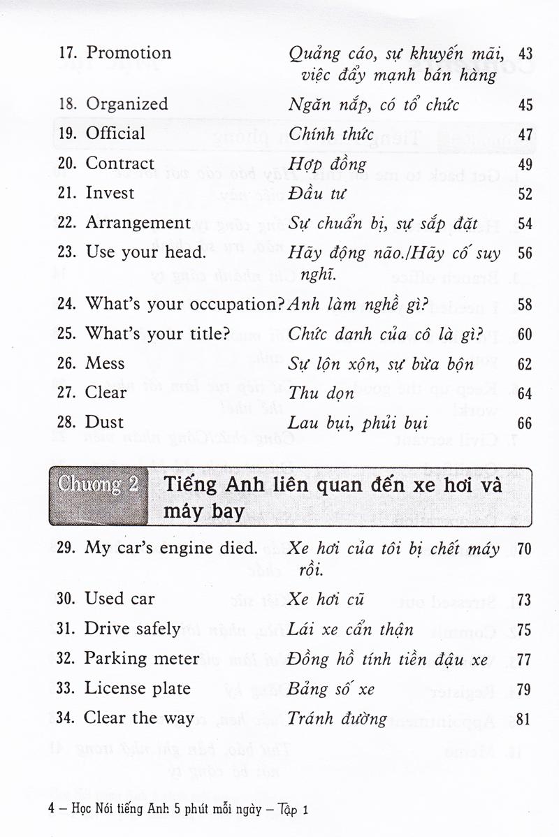 Với cuốn sách Học Nói Tiếng Anh 5 Phút Mỗi Ngày - Tập 1, các bạn sẽ được hướng dẫn các mẫu , tình huống đàm thoại quen thuộc. Nội dung cuốn sách được chia thành các nội dung chính như sau: