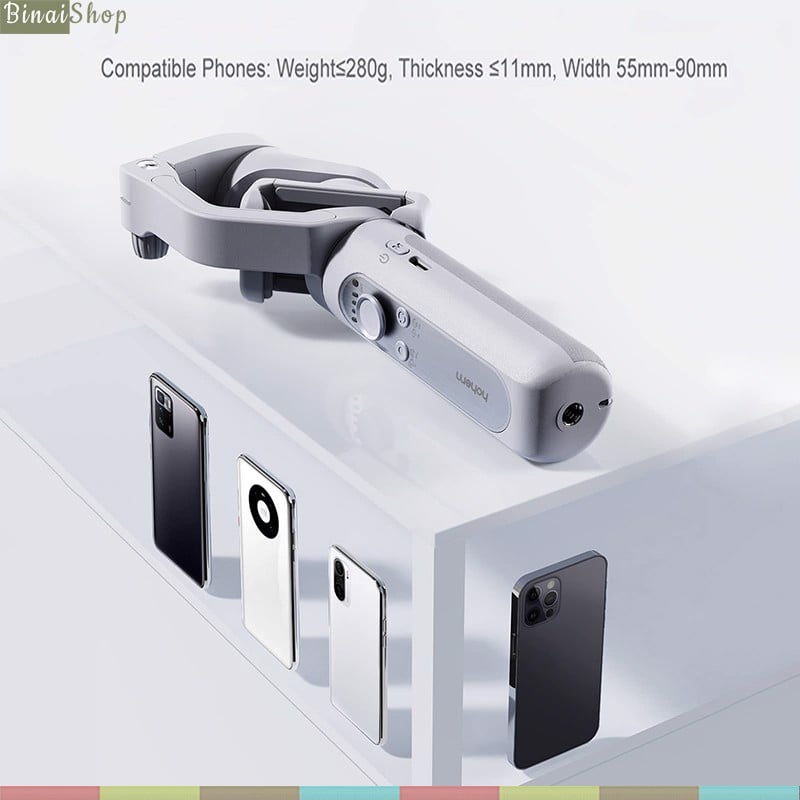 - Tải trọng lên tới 280g, tương thích hầu hết các dòng smartphone hiện tại, chiều rộng điện thoại : 55mm ~ 90mm, độ dày: ≤11mm.