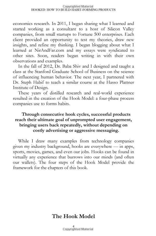 Nir Eyal answers these questions (and many more) with the Hook Model - a four-step process that, when embedded into products, subtly encourages customer behaviour. Through consecutive "hook cycles," these products bring people back again and again without depending on costly advertising or aggressive messaging.