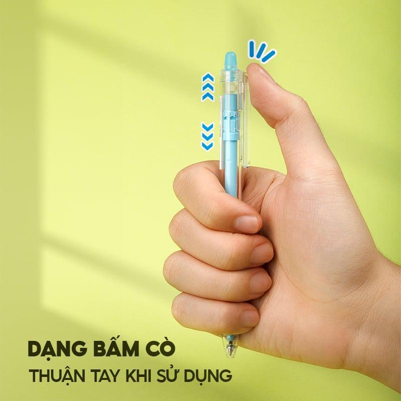 Thương hiệu: Thiên Long Xuất xứ: Việt Nam Tính năng nổi bật: Bút có thiết kế hiện đại, thân tròn, dài rất phù hợp với tay cầm của học sinh, sinh viên, nhân viên văn