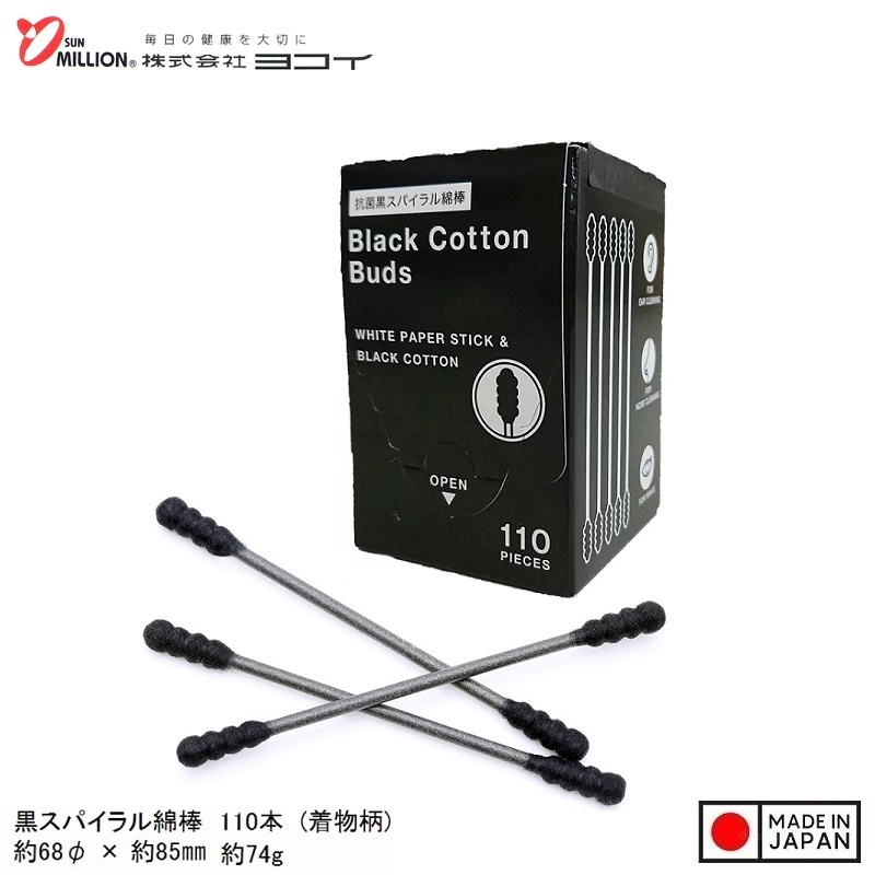 ✨Hộp 110 tăm bông kháng khuẩn than hoạt tính Sanritsu- Black - Hàng Nội Địa Nhật Bản