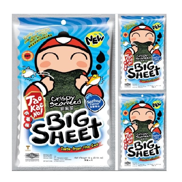 ✨Hộp 12 gói Snack rong biển Tao Kae Noi Big Sheet vị Hải Sản (4g)