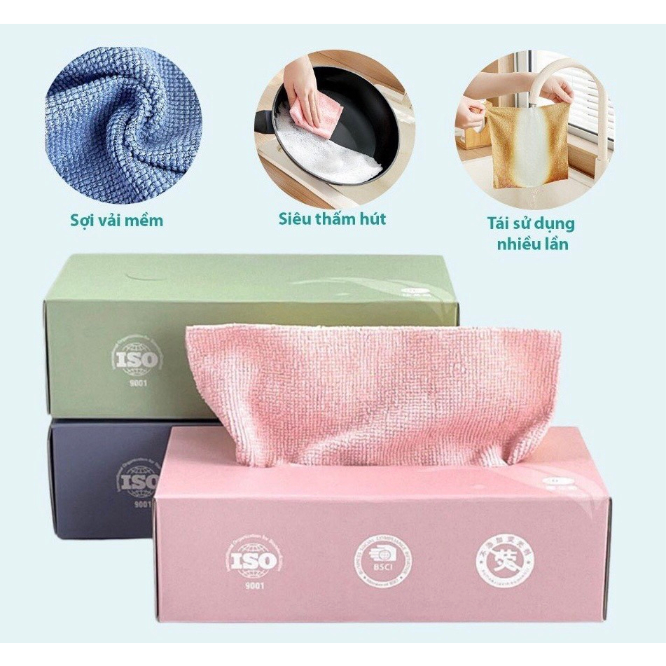 hăn Lau Bếp Siêu Thấm đa năng Hộp 20 Chiếc Bằng Vải Cao Cấp 20cmx20cm Cotton Xù Bám Mỡ Dạng Rút Tiện Lợi :