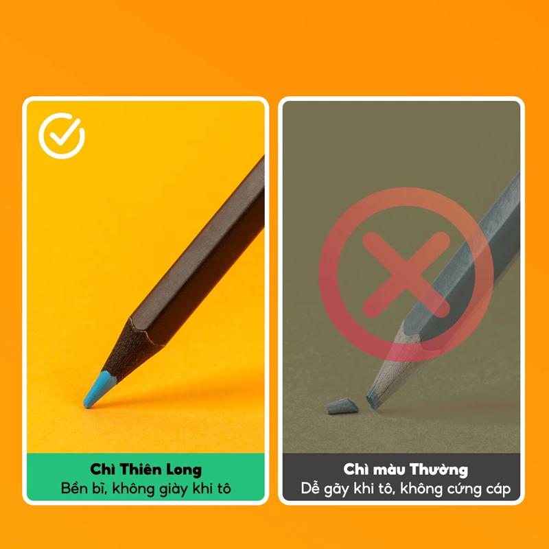 Bút chì màu có đầu chì dày, chắc chắn, khó gãy và dễ dàng khi chuốt.