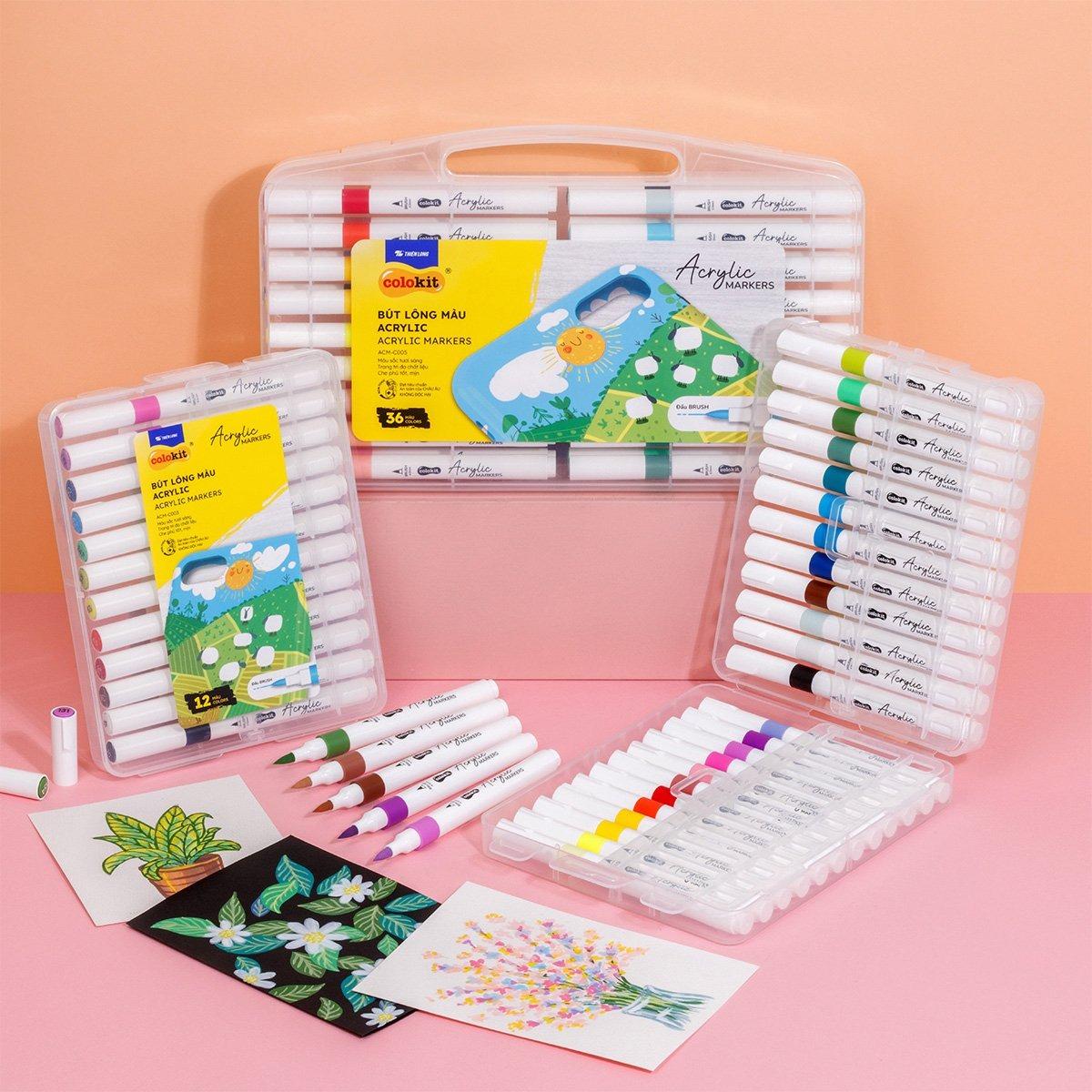 Hộp 36 Bút Màu Acrylic - Colokit ACM-C019 Bút lông màu Acrylic Markers Thiên Long Colokit 36 màu với thiết kế đầu BRUSH linh hoạt đáp ứng được đa dạng nhu cầu sử dụng. Bút
