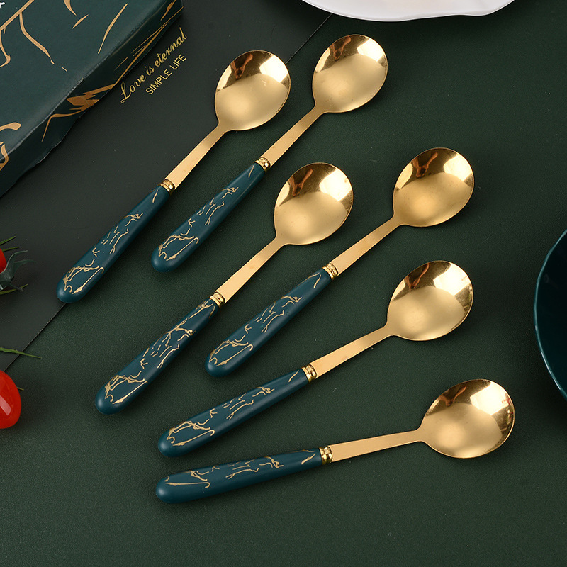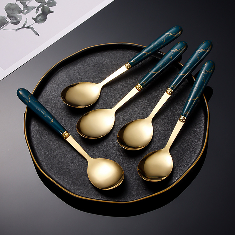 -Hộp 5 muỗng vân đá inox sang trọng , muỗng ăn decor , thiết kế tinh tế , kiểu dáng Tây Âu phù hợp dùng trong mọi hoàn cảnh trang trí bàn ăn rất đẹp
