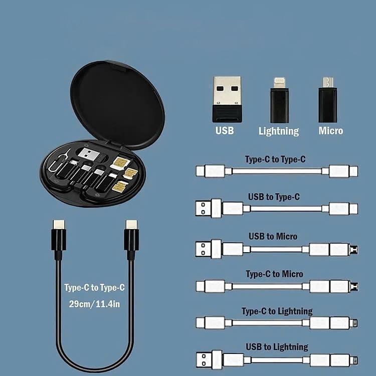 ✨Hộp Cáp Sạc Nhanh 6In1 60W Đa Năng Nhỏ Gọn Tích Hợp 4 Đầu Sạc Rời