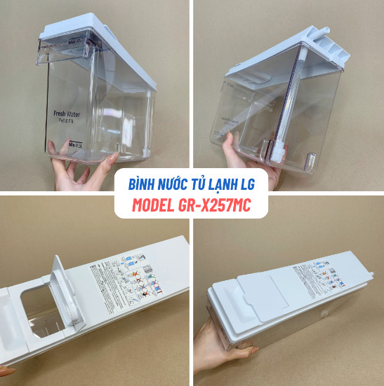 Hộp chứa nước làm đá sử dụng chung nhiều model tủ lạnh LG inveter side by side dung tích 601L/635L/675L. Hàng mới 100% - Hàng chính hãng Dung tích: Min 0.5L – Max 4L Các dòng tủ lạnh có công nghệ làm đá tự động sẽ có 1 hộp chứa nước, bên trong hộp chứa sẽ có 1 máy bơm trợ lực. Khi ta cho nước vào hộp, nước sẽ được bơm lên hộc làm đá tự động. Khi muốn lấy đá, chỉ cần bấm vào nút phía bên ngoài bảng điều khiển (có kí hiệu viên đá) là đã có thể lấy đá. Thời gian làm ra 1 vỉ đá là khoảng từ 3 - 4h. Sau khi tạo thành 1 vỉ đá, cảm biến sẽ tự nghiêng lại để đổ đá xuống khay đựng đá và lại tiếp tục bơm nước lên và tiếp tục làm đá. Với khả năng kết hợp trữ nước và sản xuất đá một cách tự động, sản phẩm này đem lại sự thuận tiện và tiết kiệm thời gian đáng kể. Một điểm đặc biệt của hộp nước làm đá tủ lạnh chính là khả năng sản xuất đá một cách tự động. Bạn không cần phải mất thời gian làm đá bằng cách đổ nước vào khuôn đá và chờ đợi. Hộp nước làm đá tự động sẽ tự động sản xuất đá theo yêu cầu, giúp bạn luôn có đủ nguồn đá mát để làm lạnh thức uống hoặc thực phẩm. Với cuộc sống ngày càng bận rộn, việc tiết kiệm thời gian trở nên quan trọng hơn bao giờ hết. Hộp nước tủ lạnh không chỉ cung cấp nước tươi ngon mà còn giúp bạn tiết kiệm thời gian trữ nước và làm đá. Không còn cần phải kiểm tra và làm đá thủ công, bạn có thể tận hưởng thời gian rảnh rỗi với những hoạt động yêu thích hơn. Model sử dụng:         GR-D247JDS.APZPEVN                                     GR-D247JS.APZPEVN                                     GR-D247MC.AMCPEVN                                     GR-D257JS.APZPEVN                                     GR-D257MC.AMCPEVN                                     GR-D257WB.AWBPEVN                                     GR-G257BL.AEPPEVN                                     GR-G257SV.APYPEVN                                     GR-P247JS.APZPEVN                                     GR-X247MC.AMCPEVN                                     GR-X257BG.AEEPEVN                                     GR-X257BL.AEPPEVN                                     GR-X257JS.ABSPEVN                                     GR-X257MC.AMCPEVN                                     GR-X22MB.AMCPEVN