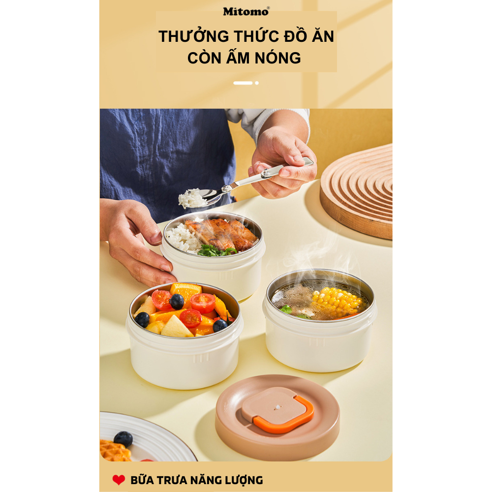 Hộp cơm giữ nhiệt Mitomo LCH - 7086 được làm bằng thép không gỉ cao cấp không những bền chắc mà còn mang lại hiệu quả thẩm mỹ cao, an toàn cho sức khỏe người sử dụng giúp bảo quản thực phẩm luôn tươi ngon, sạch sẽ thích hợp mang đi làm hoặc đi chơi xa.