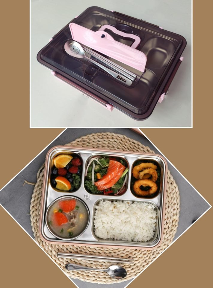 • -Hộp có chia ngăn, bạn có thể để riêng thức ăn và cơm mỗi loại 1 ngăn. Đặc Biệt có ngăn chứa canh , giá đỡ điện thoại vừa giải trí vừa thưởng thức bữa ăn ngon
