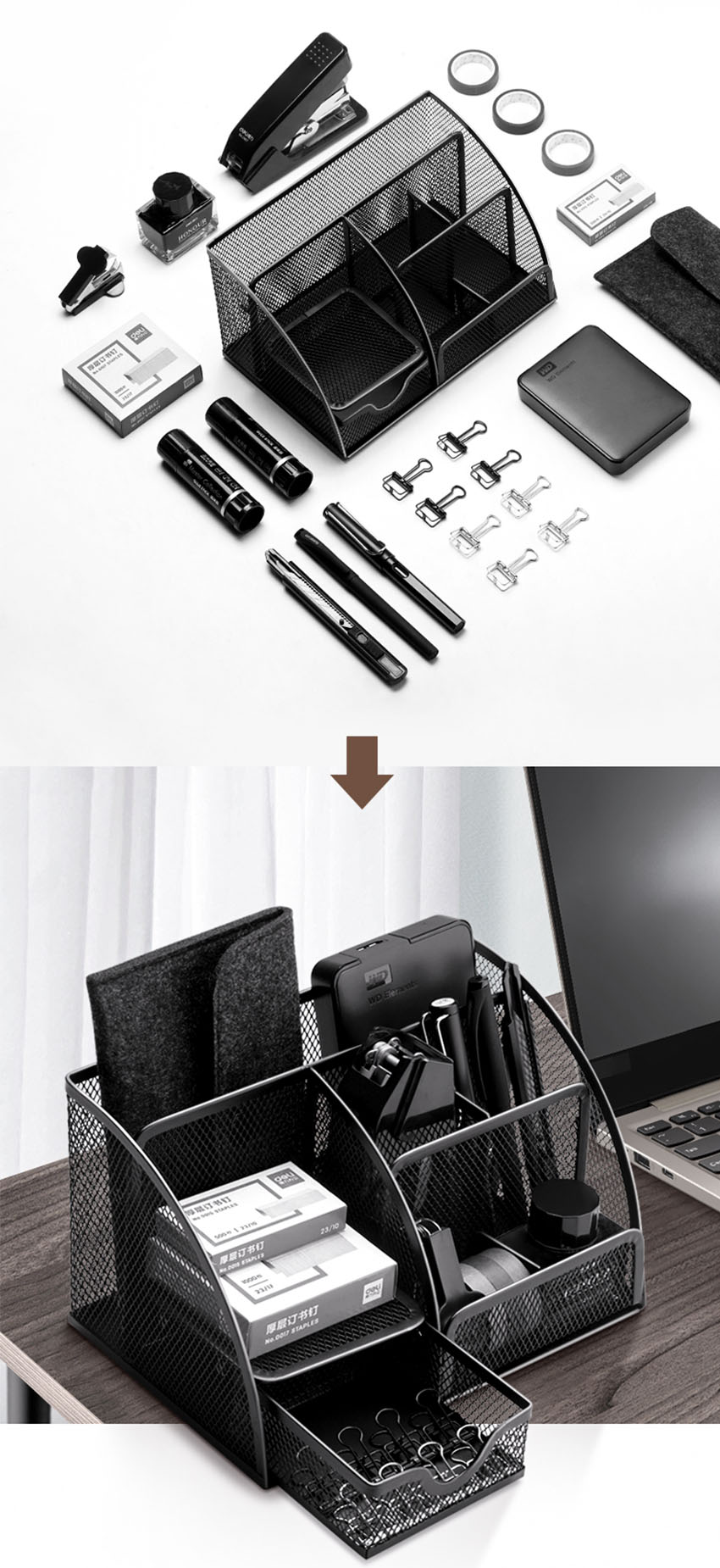 ✨Hộp đựng bút để bàn Văn Phòng Phẩm NASI NS06 nhiều ngăn bằng thép sơn tĩnh điện cứng chắc khay đựng kệ để bút học sinh