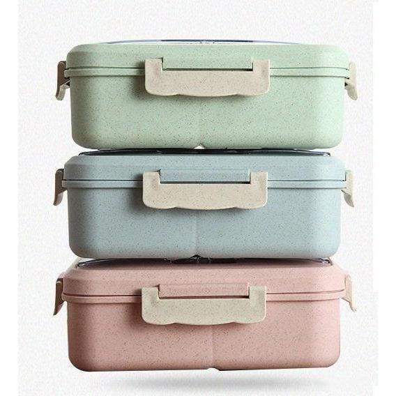 ✨Hộp Đựng Cơm Lúa Mạch 1 Tầng 3 Ngăn Kèm Đũa Và Thìa Inox