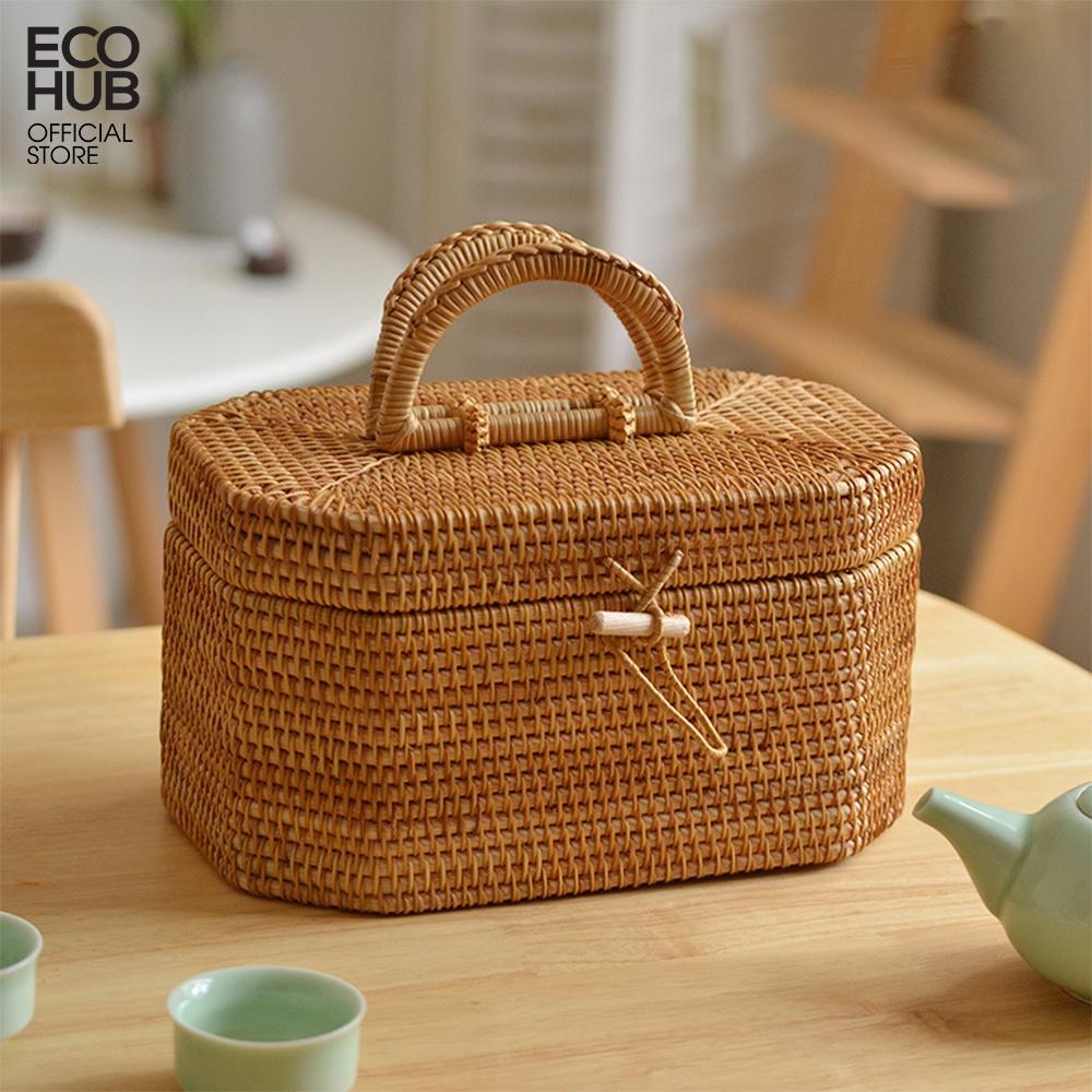 ✨Hộp đựng đồ ECOHUB bằng mây 8 cạnh có nắp đậy, tay cầm