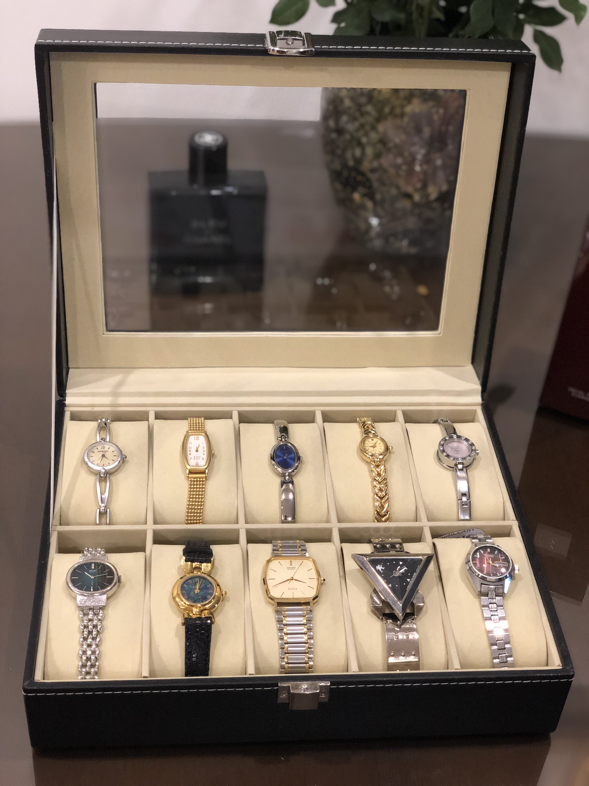Bạn có khoảng 6-8 chiếc đồng hồ và phụ kiện trang sức như nhẫn, vòng ùng với đó bạn thích hộp có mặt kính để nhìn thấy phụ kiện bên trong hộp và hộp có