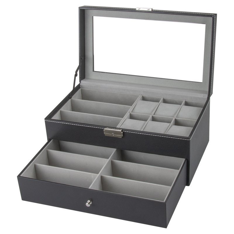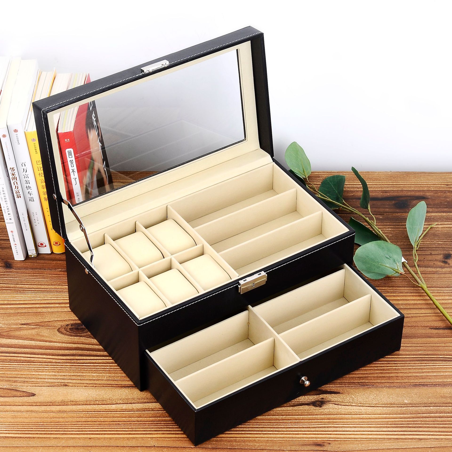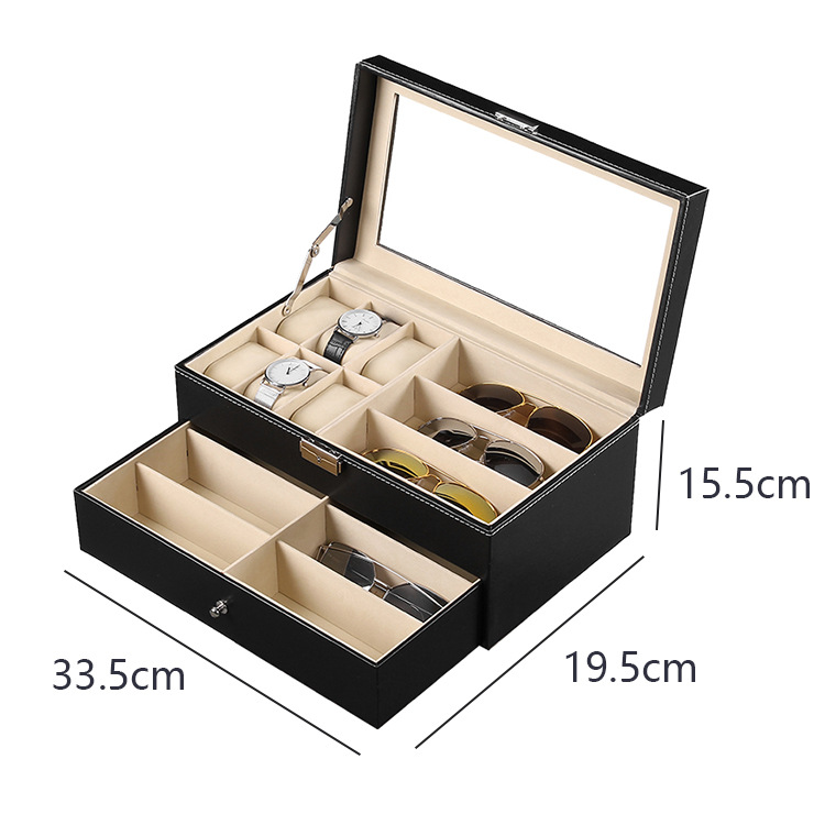 ✨Hộp Đựng Đồng Hồ Và Mắt Kính 2 Tầng SAIKE SAIKE S609 Vỏ Da Màu Đen