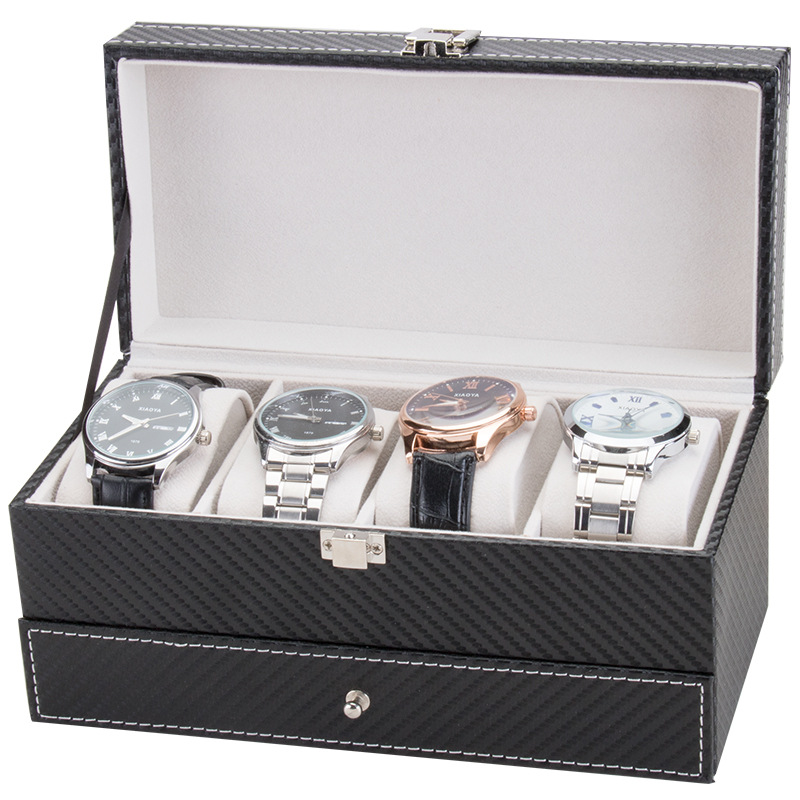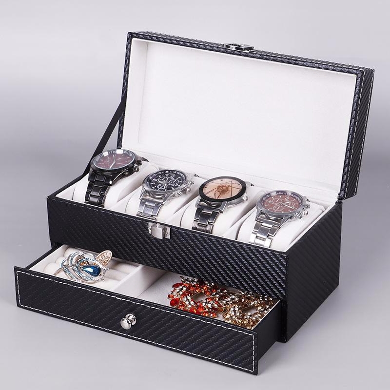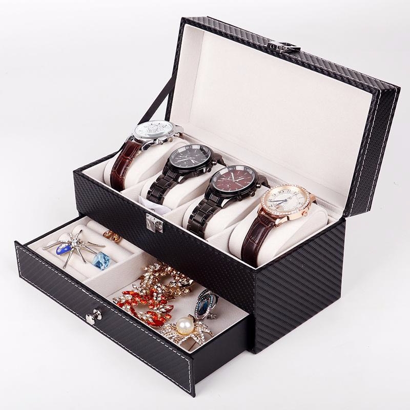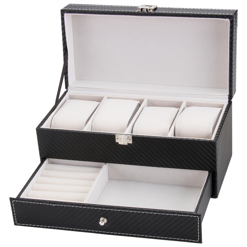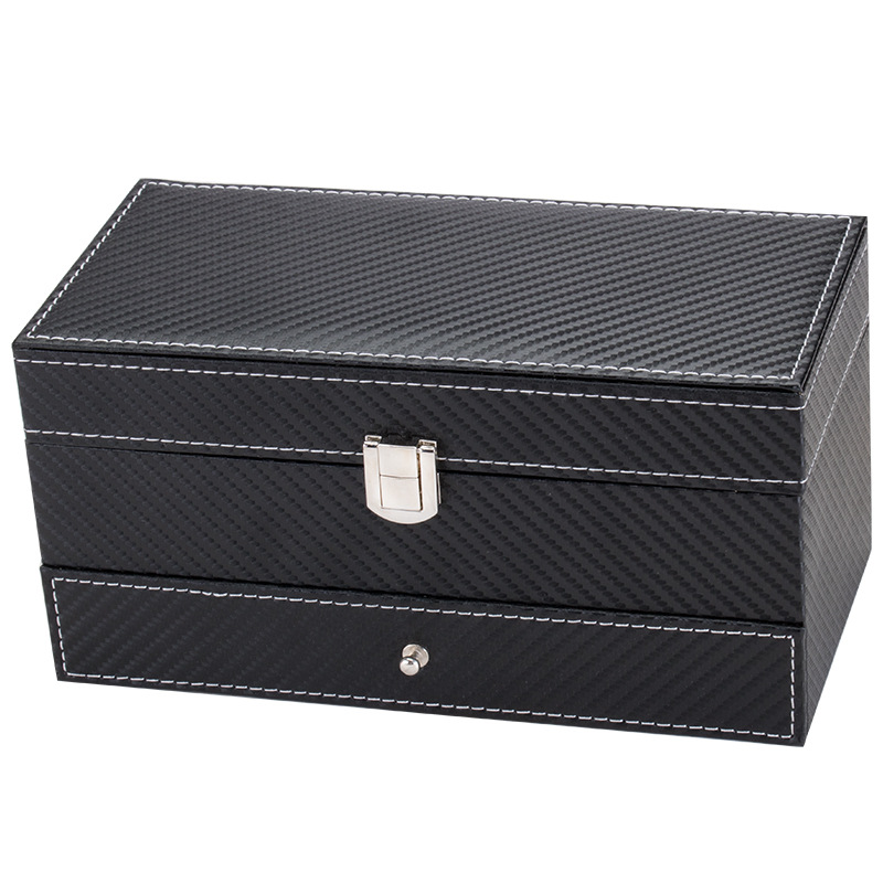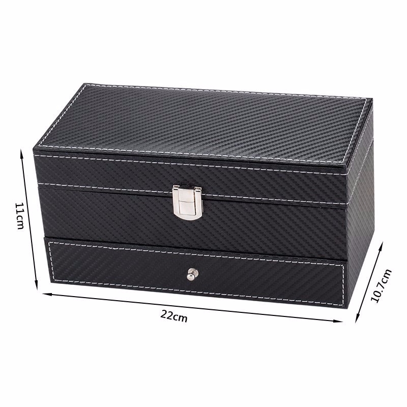 Hộp 2 tầng đựng đồng hồ và trang sức vỏ da carbon màu đen #hộp #hopdungdongho #hopdungtrangsuc