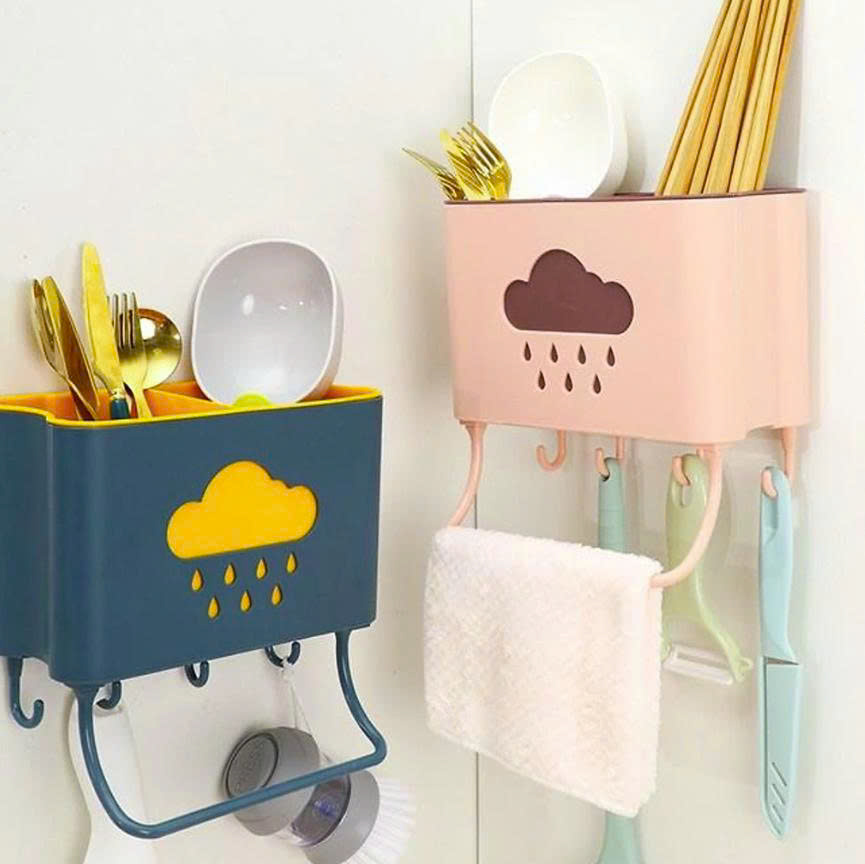 Hộp đựng đũa muỗng treo tường hình đám mây kèm móc treo khăn dụng cụ bếp tiện lợi