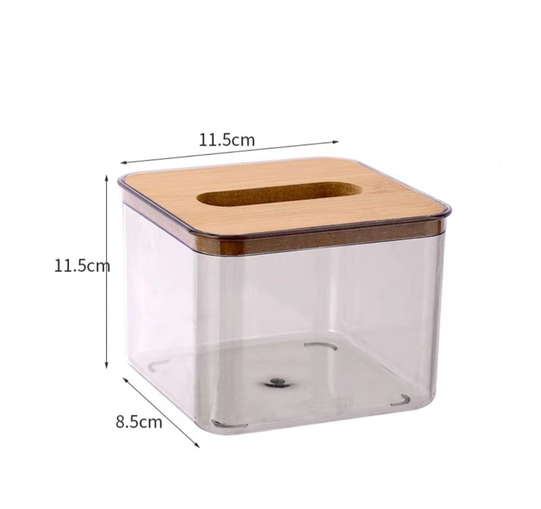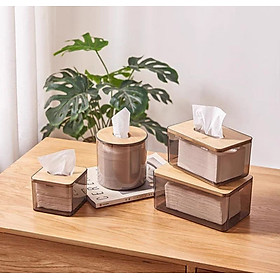 Hộp Đựng Giấy Ăn Khăn Giấy Nhựa MiKa Trong Suốt Nắp Gỗ Tre Tự Nhiên Màu Sắc Kiểu Dáng Phong Cách Bắc Âu