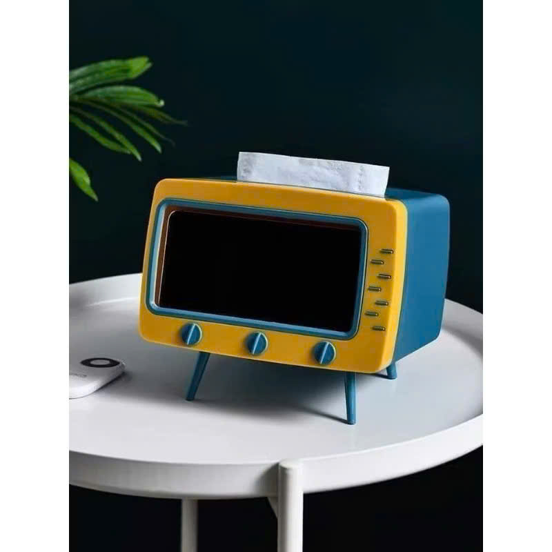 Thiết kế đẹp độc lạ hình dáng như chiếc tivi ngày xưa, mặt trước có chỗ để màn hình điện thoại, bên trong lại là hộp giấy ăn vô cùng tiện dụng, đặt trên bàn