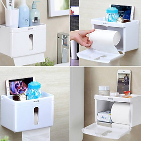 Được làm từ nhựa bền đẹp, thời gian sử dụng lâu dài. Nắp đậy có thể đóng mở 1 tay. Dùng treo các cuộn giấy có chiều dài nhỏ hơn 18cm, phía dưới có rãnh răng cưa để xé giấy, thuận tiện hơn trong việc lấy giấy. Phía trên kệ có khay đựng đồ và khe cắm điện thoại tiện dụng, có thể sử dụng điện thoại trực tiếp, có thể chịu tải lên đến 2kg. Phía trước có khe trong suốt để theo dõi lượng giấy bên trong nhằm thay thế giấy khi sắp hết.
