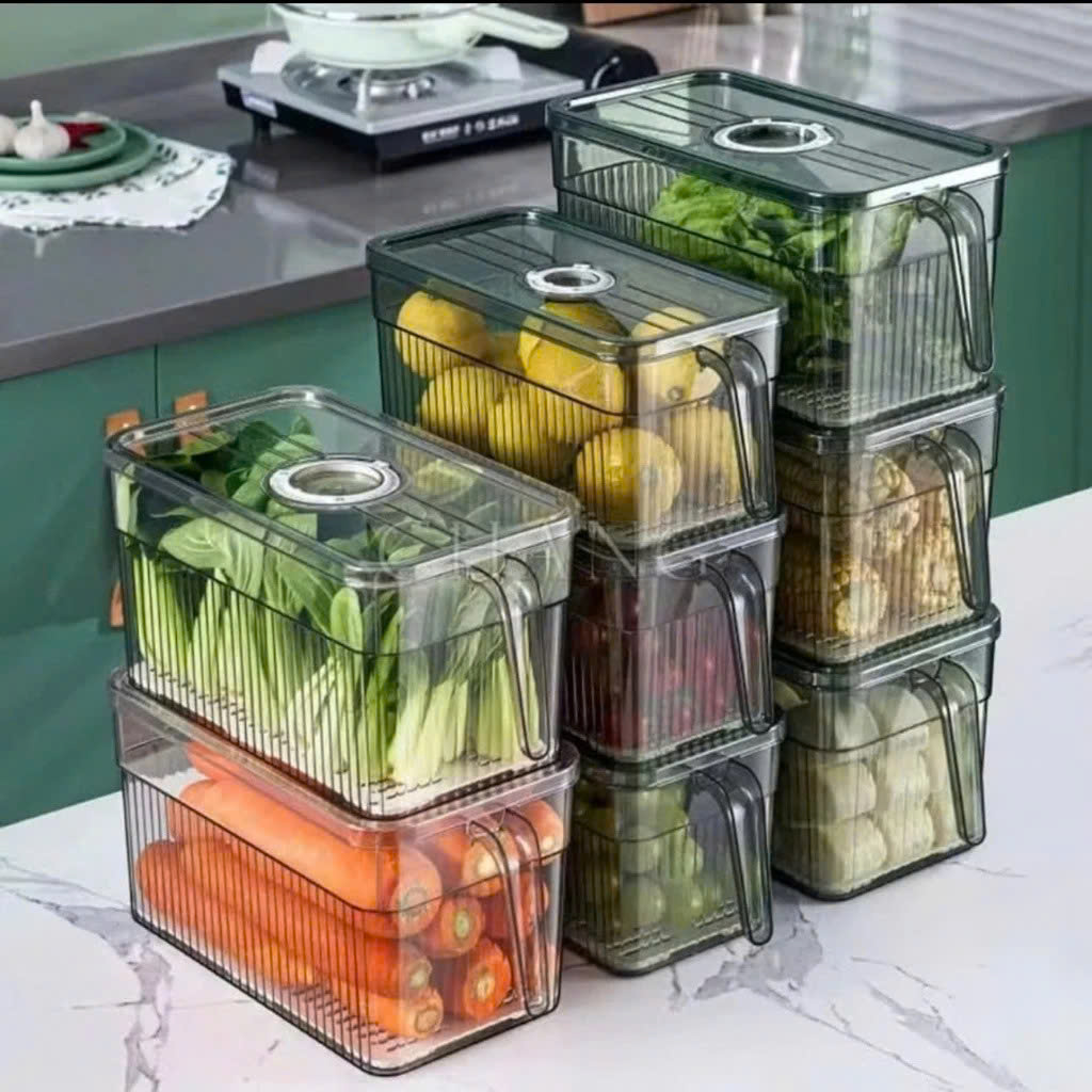 Hộp Đựng Thực Phẩm 3L Có Nắp Tách Nước & Tay Cầm Tiện Lợi – Dùng Cho Tủ Lạnh