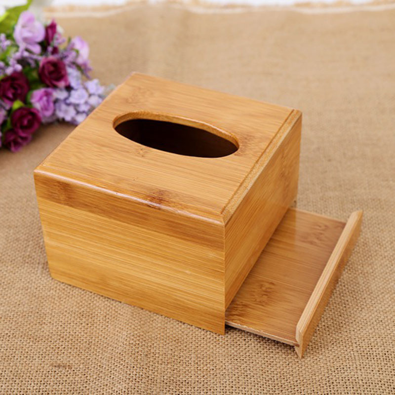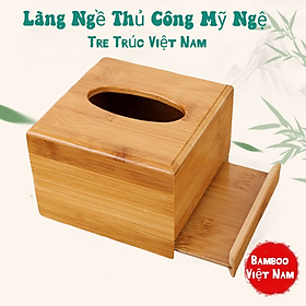 Hộp Khăn Giấy Bằng gỗ Tre có khay kéo thay giấy dễ dàng tiện lợi ( Tặng kèm 1 khăn lau bàn trà) - Hàng Việt Nam