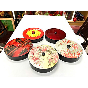 Hộp đựng mứt Tết sơn mài tròn là mẫu hộp cơ bản và truyền thống nhất., bạn có thể từng thấy qua các thiết kế hộp với chất liệu nhựa đơn giản, kém sang trọng. Thì nay chiếc hộp đựng mứt Tết sơn mài sẽ cao cấp và đáng giá hơn.