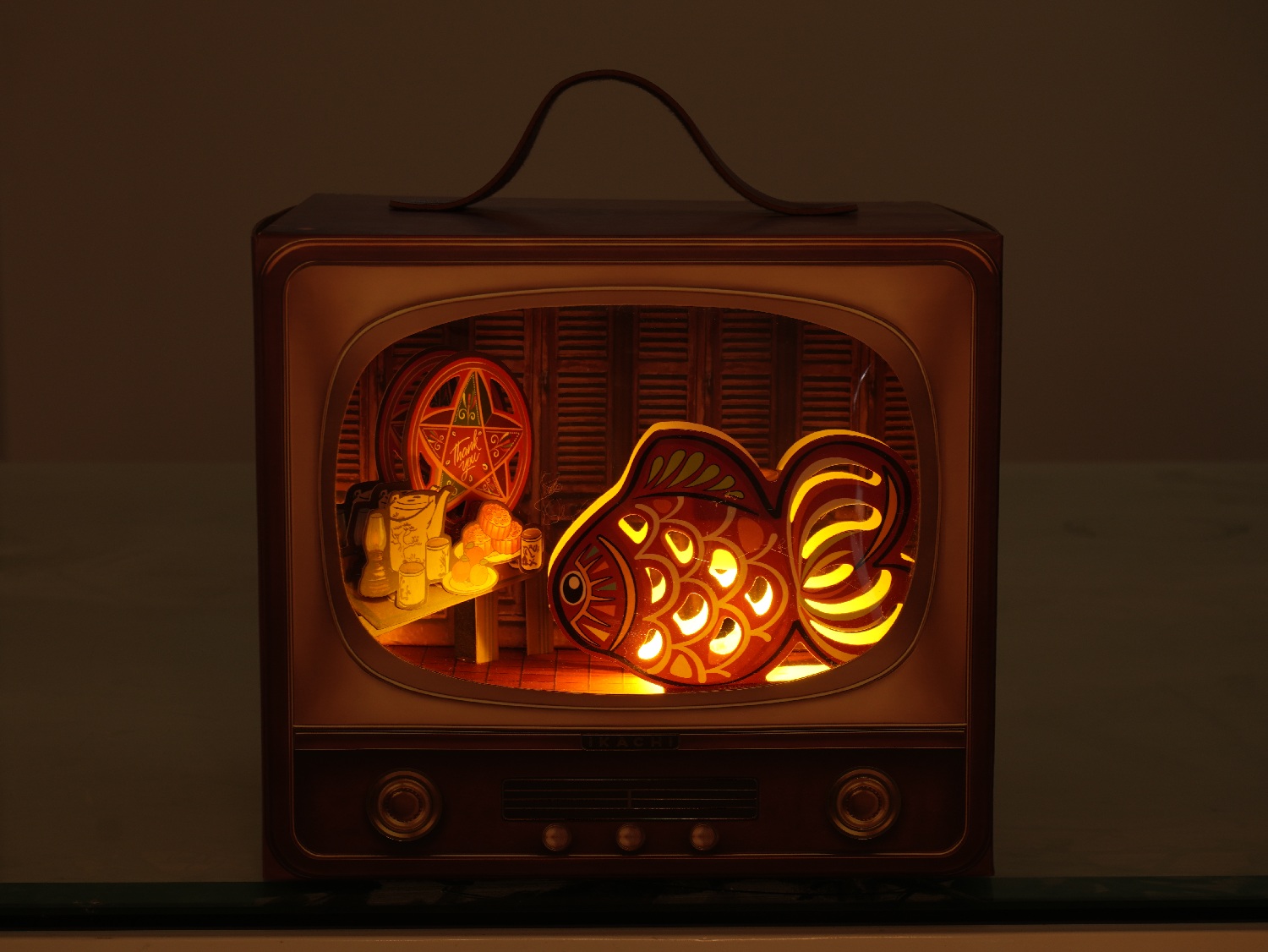 "Truyền Hình Tuổi Thơ Xanh" là chiếc tivi cổ chiếu lại từng khoảnh khắc tuổi thơ giản dị nơi ký ức sống dậy qua đèn lồng, bánh nướng, trò chơi dân gian