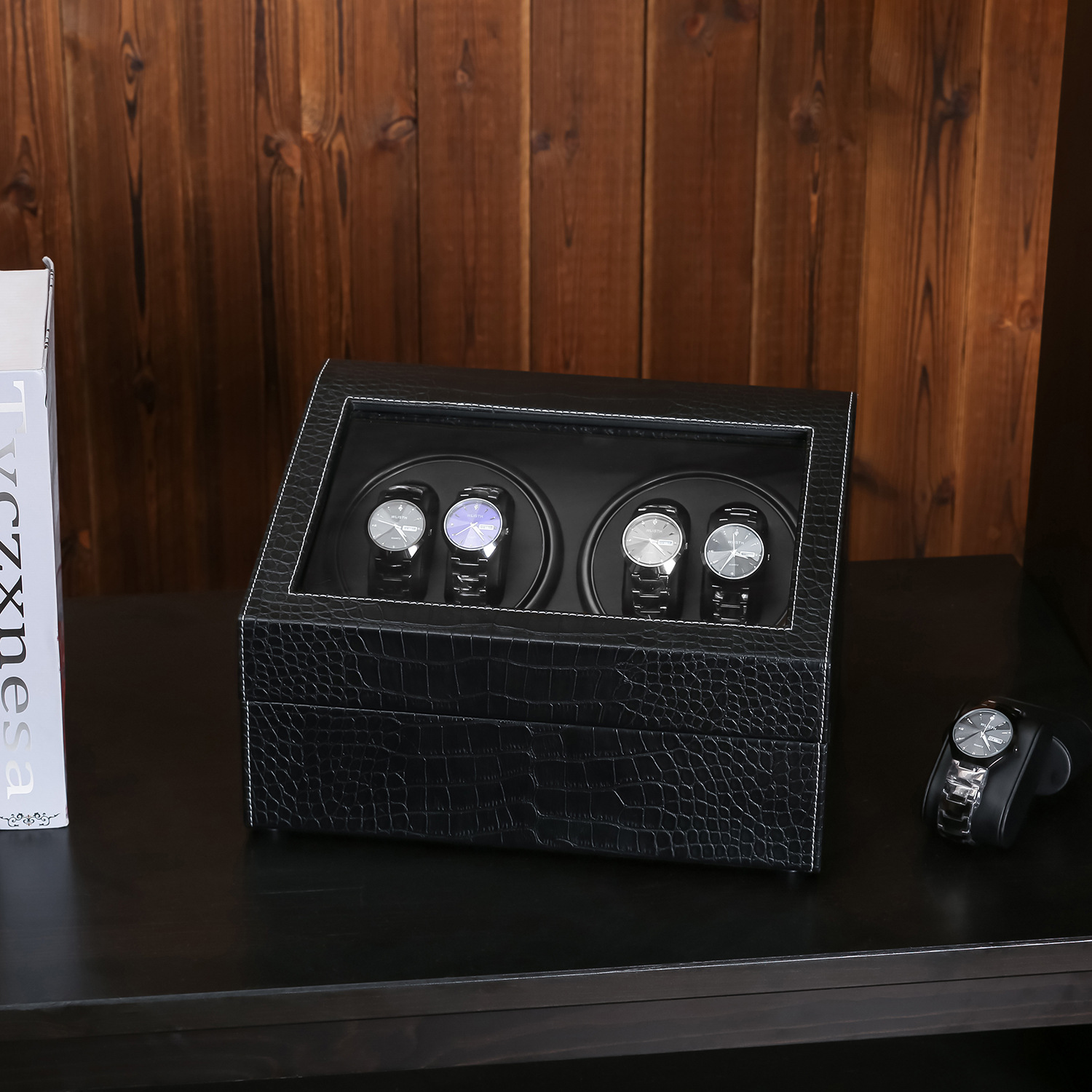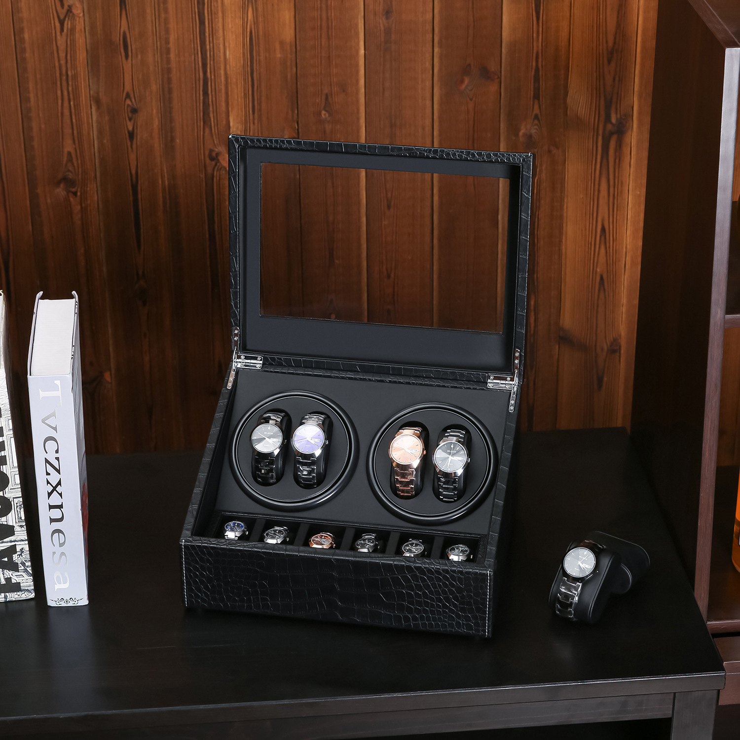 Thông tin sản phẩm: Hộp Xoay Đồng Hồ Cơ SAIKE S4602 Mẫu 4 Xoay 6 Tĩnh Vỏ Da Cá Sấu Màu Đen - Thương hiệu: SAIKE - Hộp thiết kế đựng 4 chiếc đồng hồ