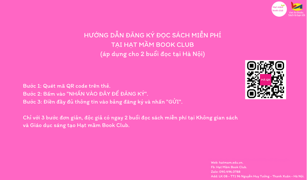 Ghi chú: Để kích hoạt được thẻ đoc tại HẠT MẦM BOOK CLUB sau khi mua HỘP YÊU THƯƠNG 2 độc giả bấm vào mã QR code hiển thị trên phần hình ảnh để đăng ký thông tin và thời gian cụ thể. Trường hợp không, độc giả inbox trực tiếp vào gian hàng Việt An Books trên tiki để xác nhận thông tin chính xác và kịp thời.