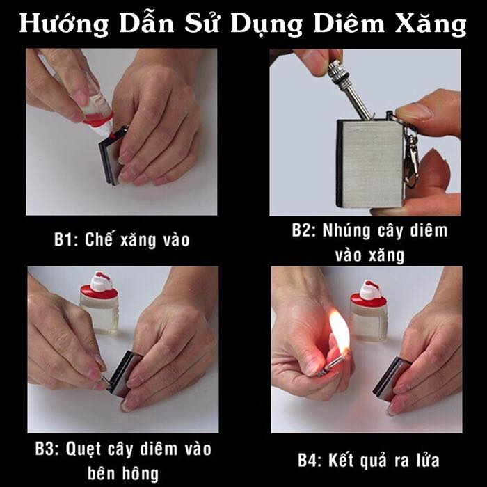 Hột quẹt bật lửa móc khóa diêm xăng sinh tồn hình Trụ Tròn - xài xăng