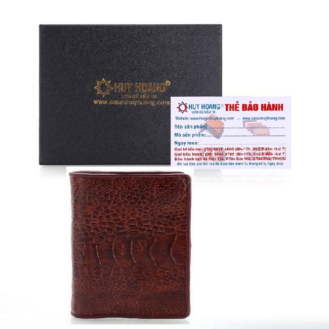 Bóp/Ví da đà điểu Huy Hoàng da chân kiểu đứng màu nâu đỏ, vàng bò, đen, nâu đất 2411-12-13-15