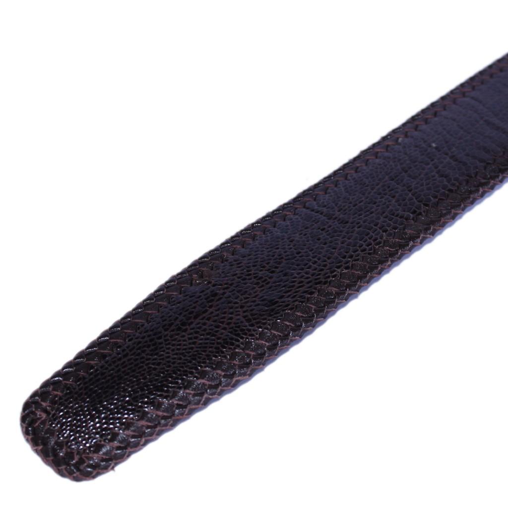 ✨HP4461 - Dây nịt nam da đà điểu Huy Hoàng đan viền 3,5P đầu kim màu nâu đất