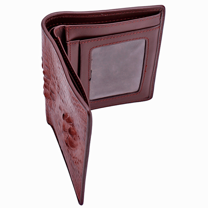 Ví/Bóp nam Huy Hoàng da bò vân cá sấu màu nâu đỏ 2148