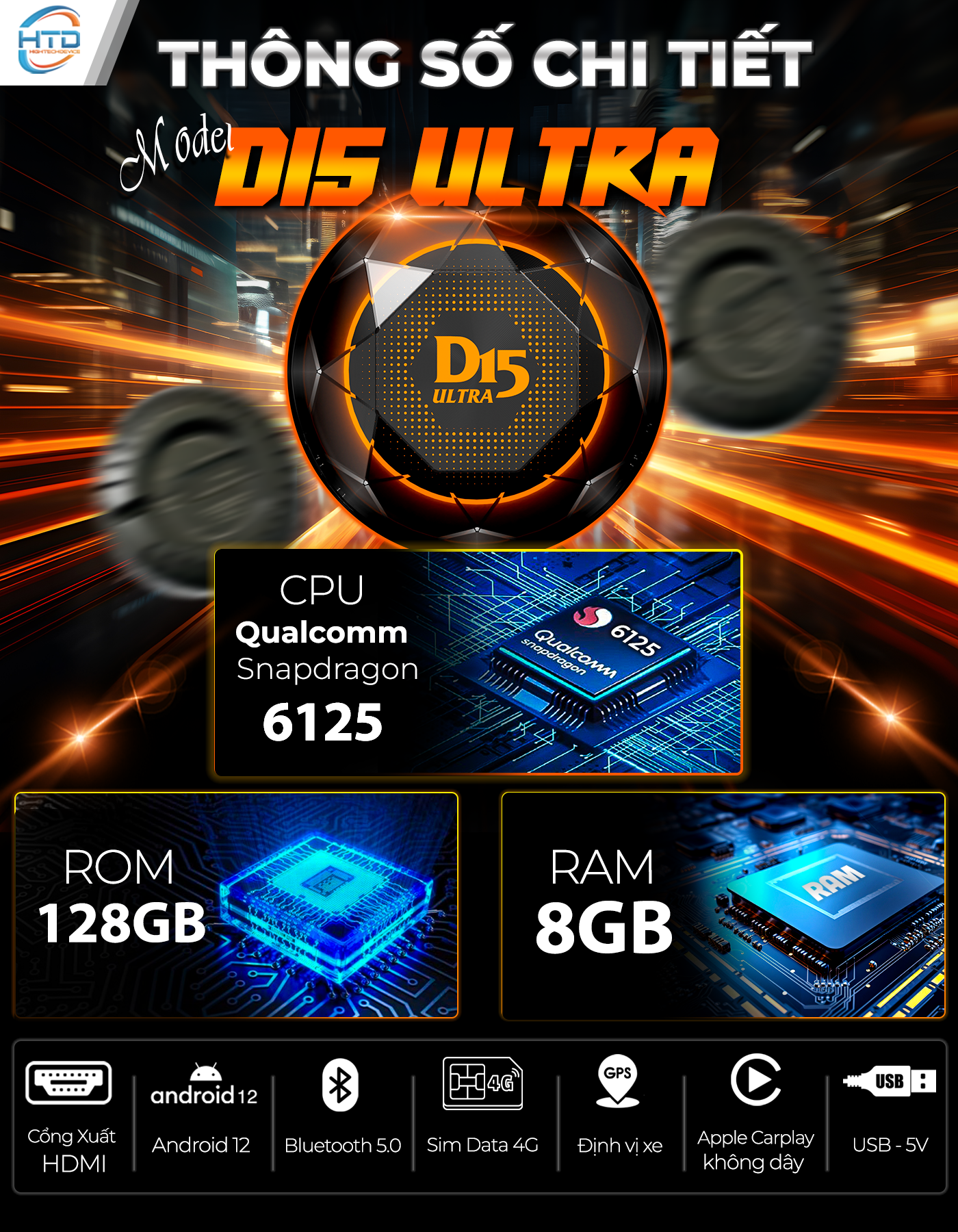 ✨HTD Bộ Chuyển Đổi Màn Hình Android D15 Ultra dành cho ô tô thế hệ mới nhất (Tặng kèm Bơm Điện Mini P23, VM Live Plus 2 năm)