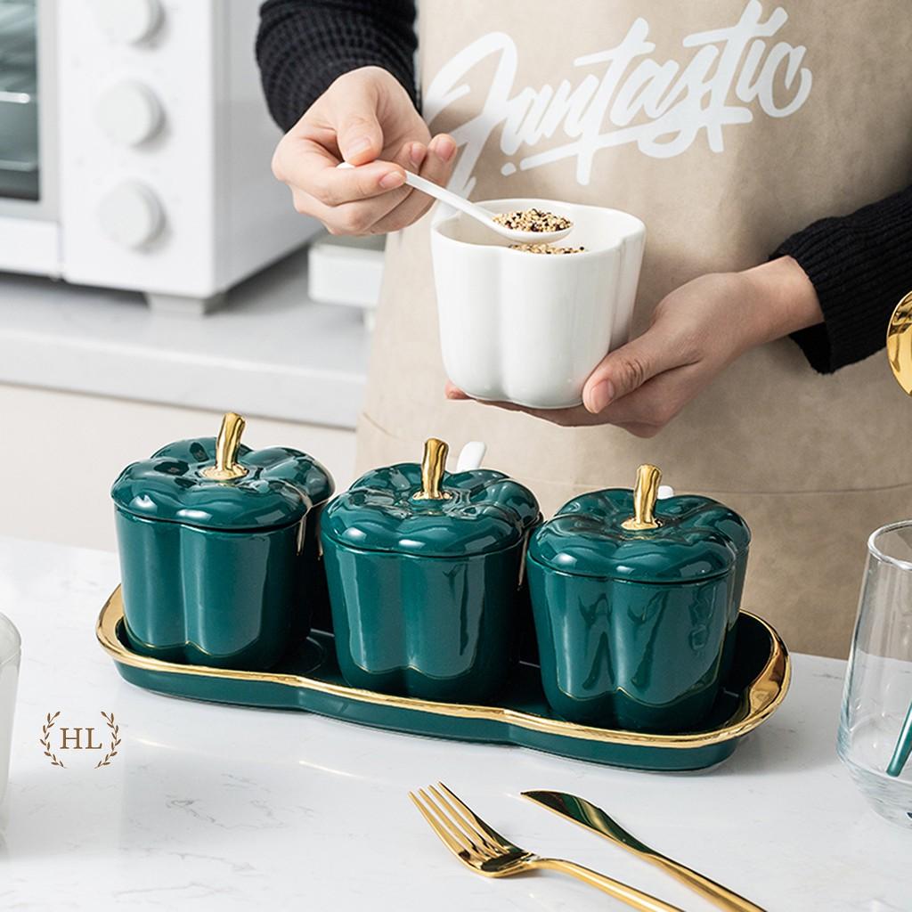 Bộ Hũ Đựng Gia Vị Gốm Sứ Cao Cấp HDGV-01 | Sang Trọng – Tinh Tế – An Toàn Cho Mọi Căn Bếp