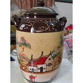 ✨Hũ đựng rượu gạo gốm sứ Bát Tràng vẽ phong cảnh loại 20L