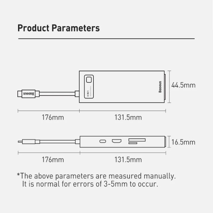 Thông số kỹ thuật - Thương hiệu: Baseus - Tên sản phẩm: Baseus Lite Series 6-Port Type-C HUB Docking Station - Màu sắc: Đen, Trắng - Chất liệu: ABS - Trọng lượng: 45g - Input: