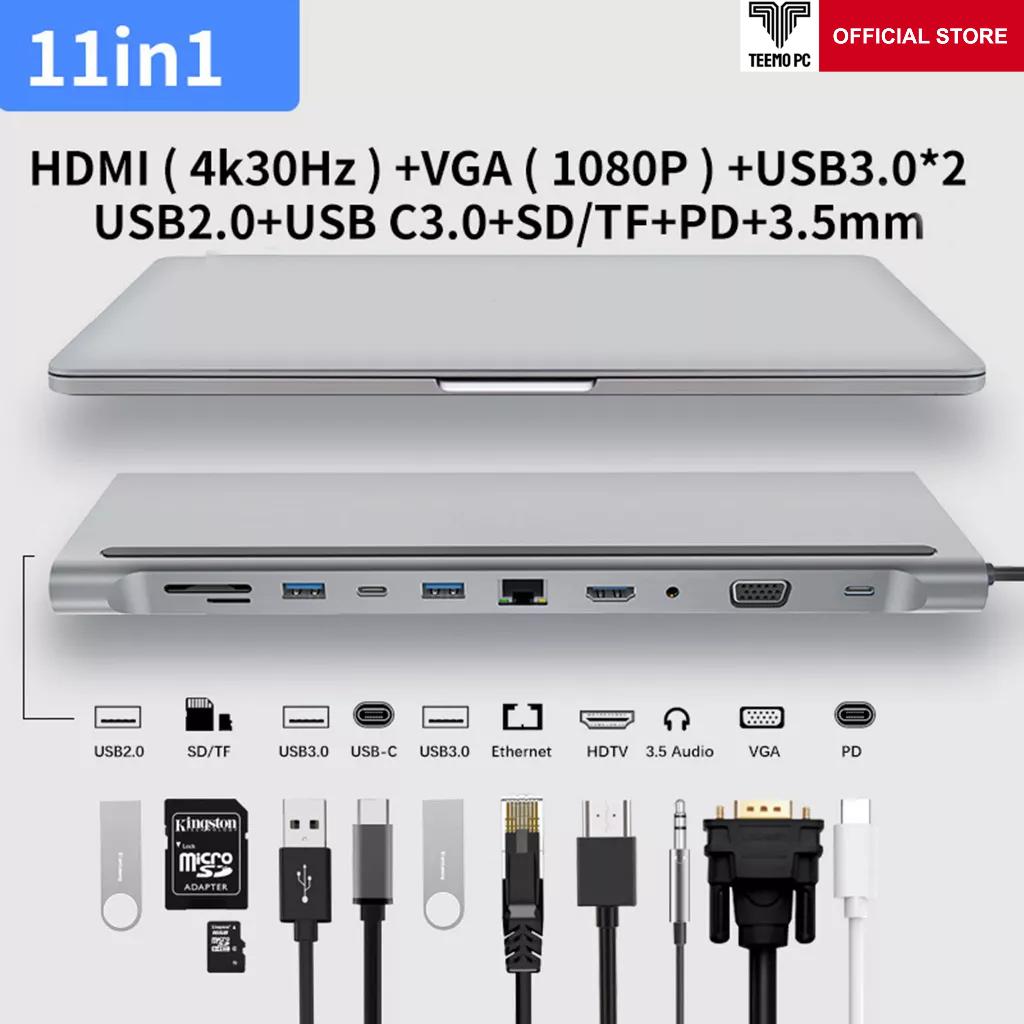 ✨HUB Type C Chia 11 in 1 to HDMI VGA SD/TF Audio USB RJ45 Cổng Dùng Cho Laptop MacBook Surface, Các Loại Điện Thoại Tablet Dùng Cổng USB - C TEEMO PC Hàng Chính Hãng