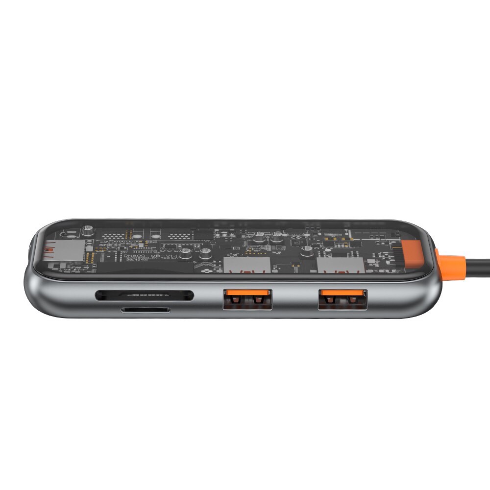 Hub chuyển đổi đa năng 8 trong 1 Baseus CAHUB-CV0G ( Type-C to HDMI/ USB3.0/ LAN / SD Card Reader/ Type C PD 100W, Multifunctional HUB) - HÀNG NHẬP KHẨU Hub chuyển đổi
