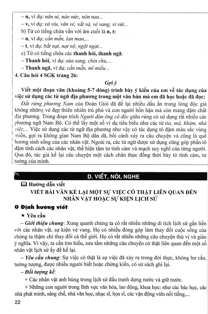 Ngoài việc hướng dẫn gợi ý trả lời các câu hỏi trong sách giáo khoa, cuốn sách còn giúp thầy cô và các em ôn tập, củng cố, mở rộng thêm vốn kiến thức môn Ngữ văn cũng như tự tin viết và nói được những kiểu văn bản: tự sự, nghị luận, thuyết minh và văn bản thông tin. Để sử dụng hiệu quả cuốn sách này, quý thầy cô và các em nên kết hợp chặt chẽ với bộ sách giáo khoa Cánh diều.