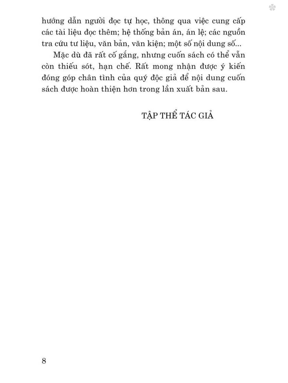 Giáo trình cung cấp khá đầy đủ kiến thức cơ sở về cơ sở lý luận, cơ sở pháp lý và cơ sở thực tiễn của việc xử lý tội phạm và xác định các