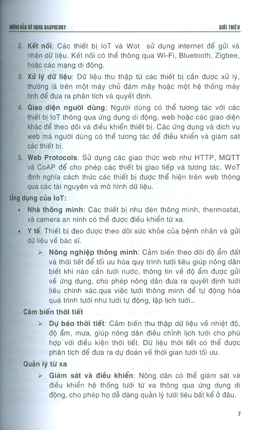 Sách bao gồm 6 phần với 8 chương và 1 phụ lục, cung cấp đầy đủ kiến thức từ cơ bản đến nâng cao về Raspberry Pi. Bạn sẽ được học cách: