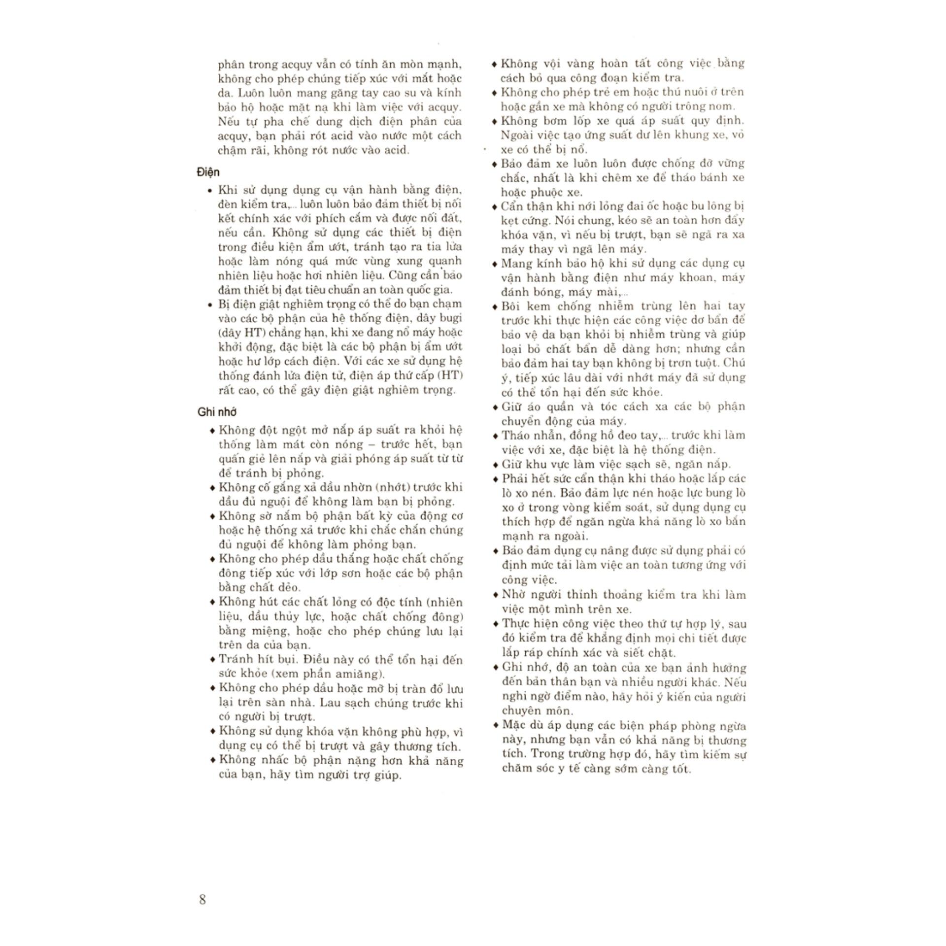 Cuốn sách này được viết với mục đích giúp các bạn sử dụng xe tốt nhất, cung cấp mọi thông tin cần thiết để bạn có thể tự bảo trì, bảo dưỡng, tự chẩn đoán và sửa chữa hầu hết các sự cố của xe. Ngay cả khi phải đưa xe đến tiệm sửa chữa, cuốn sách này cũng giúp bạn xác định những công việc cần thực hiện để khỏi lãng phí thời gian và tiền bạc.