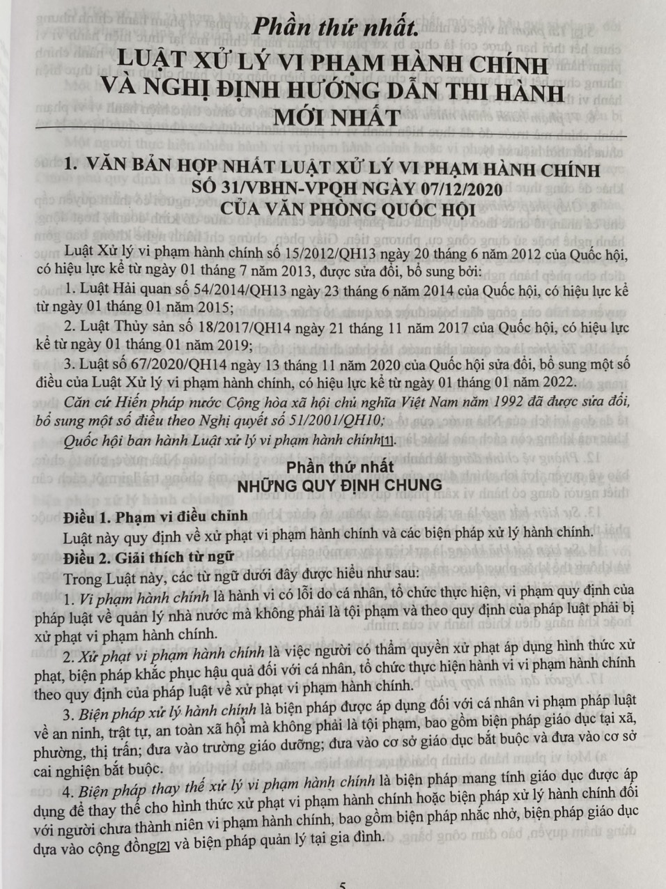 Phần thứ nhất. LUẬT XỬ LÝ VI PHẠM HÀNH CHÍNH VÀ NGHỊ ĐỊNH HƯỚNG DẪN THI HÀNH MỚI NHẤT