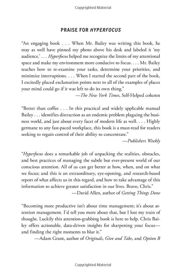 'The best productivity plans call for strategy, not just hacks or tactics – and Hyperfocus gives you strategy in spades. When you read this book, get ready to do your most important work!' Chris Guillebeau