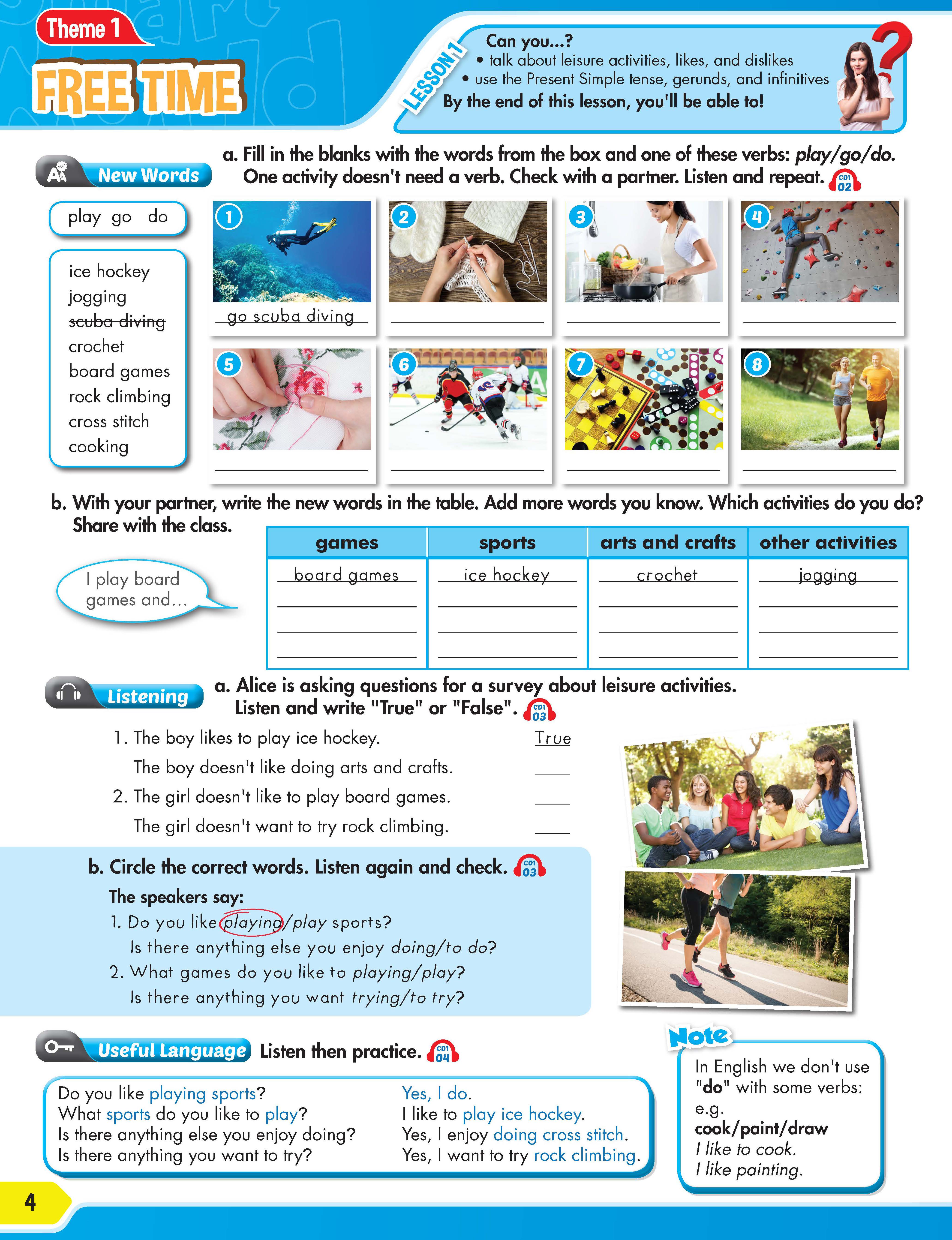 Share It! 4 Workbook The Workbook provides reinforcement of the Student Book lessons' content, and can be used in class or as homework.